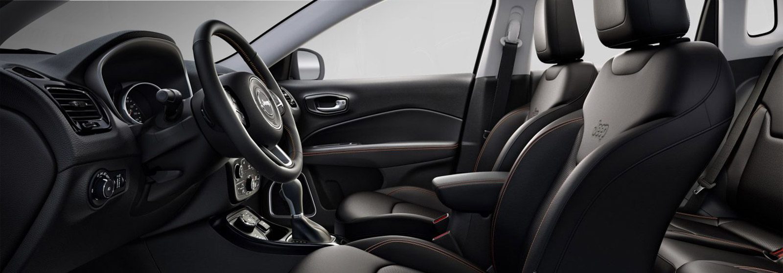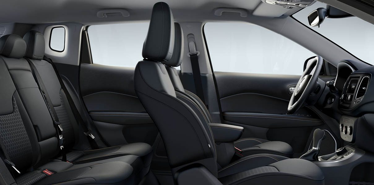 В Jeep® Compass Longitude сиденья обтянуты черной тканью и украшены двухцветной декоративной прострочкой. Такие сиденья не только прекрасно выглядят, но и обеспечивают комфорт, чтобы вы могли смело двигаться навстречу любым приключениям.