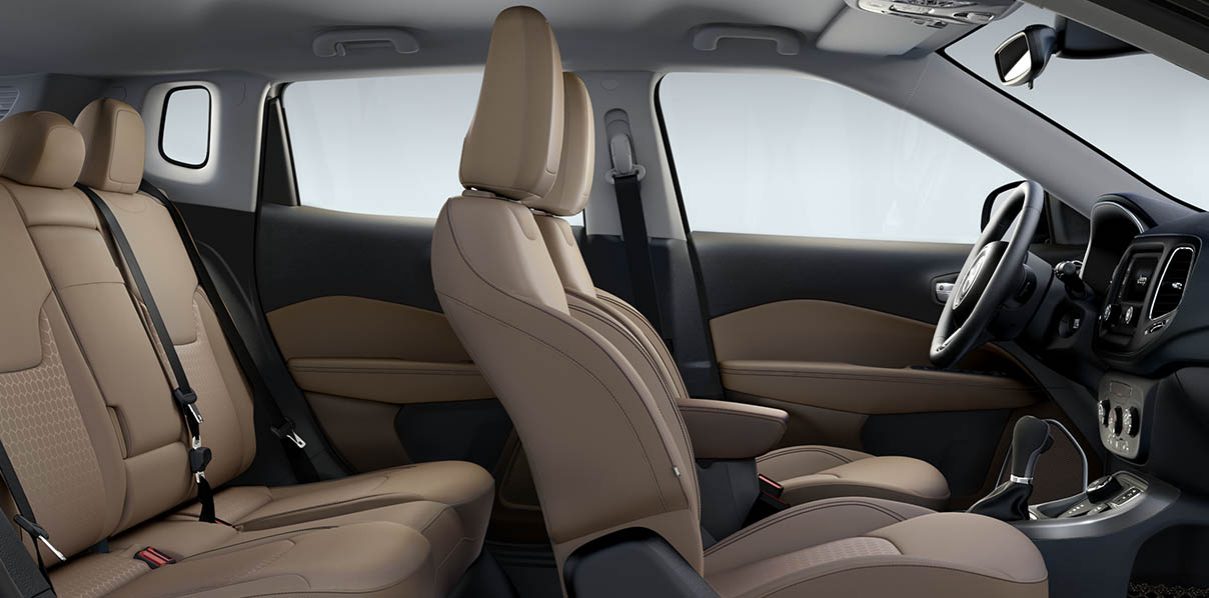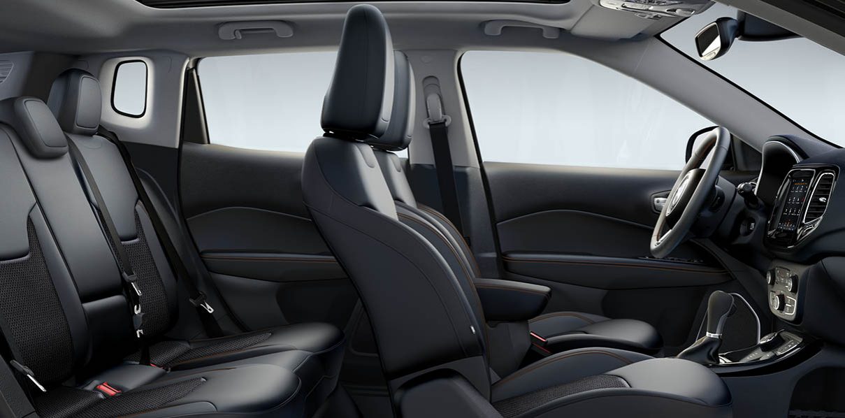 В качестве опции для Jeep® Compass Limited предлагаются эффектные сиденья с комбинированной кожаной обивкой цвета Sky Gray/Black. Рубиновая декоративная прострочка придает интерьеру особую привлекательность. Передние сиденья с подогревом и электрорегулировкой по 8 параметрам гарантируют максимальный комфорт.